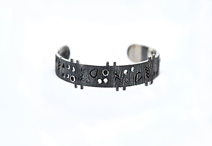 - It's rough and oxidized with precise details etched across the face of the cuff. Its light oxidation...